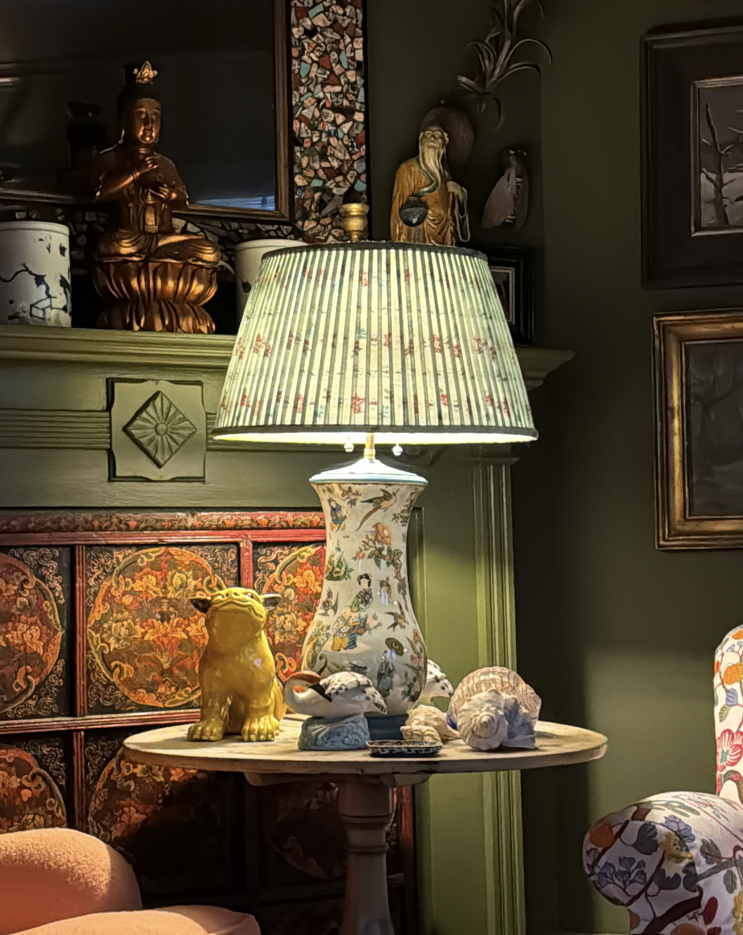 Based in Rockland, Maine, The Lamp & Chair curates interiors and antique collections that feel at once worldly and deeply personal—spaces where time-worn chinoisserie, burnished brass, and faded silk convene in conversation.